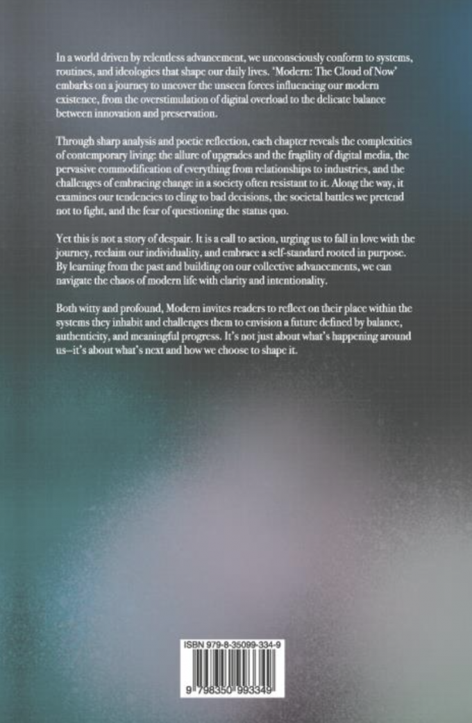 Both witty and profound, Modern invites readers to reflect on their place within the systems they inhabit and challenges them to envision a future defined by balance, authenticity, and meaningful progress. It’s not just about what’s happening around us—it’s about what’s next and how we choose to shape it.